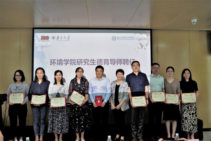 2021年10月,在新生开学仪式上,学院举办了研究生德育导师聘任仪式,学院党委书记刘建萍、中国工程院院士、南京大学环境学院院长任洪强为8位研究生德育导师颁发了聘书。根据制度安排,学院德育导师由副教授以上职称的教师党支部书记和支部委员担任,师生比为1:50。学院担任德育导师的老师们热爱教育事业、热心公益,在思想、科研、就业、心理等各方面为同学们答疑解惑,指引成长方向。