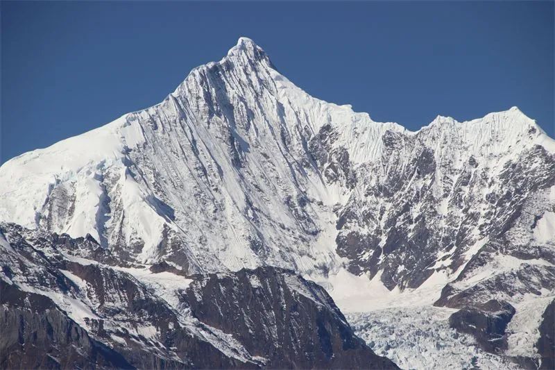 海拔6740米的主峰至今仍是人类未能征服的“处女峰”。由于垂直气候明显,梅里雪山地区的气候变幻无常,雪雨阴晴全在瞬息之间。