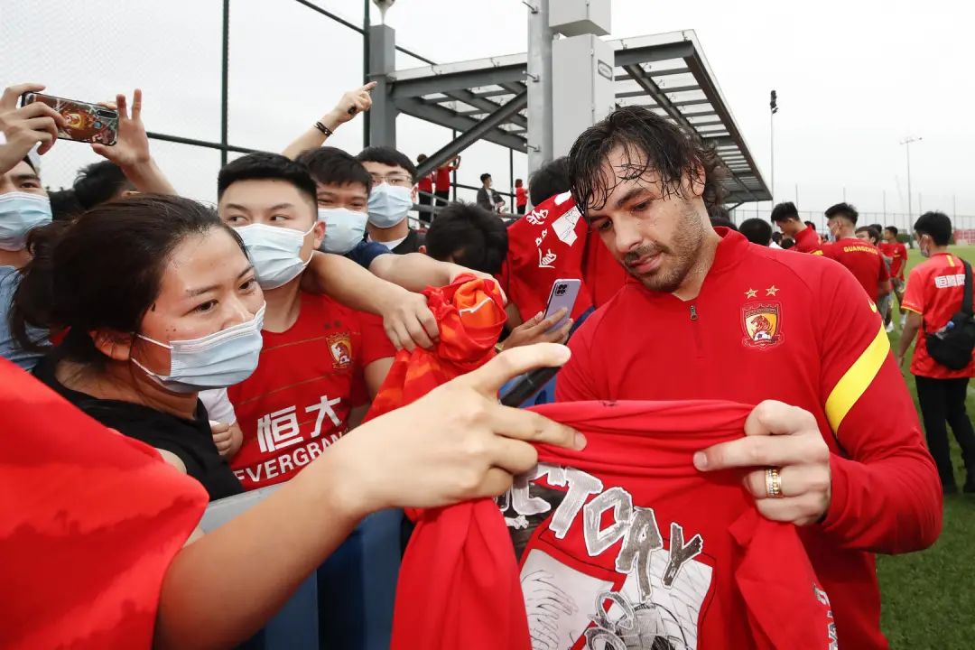 2021年4月15日,广州队公开训练,高拉特为球迷签名 图据视觉中国