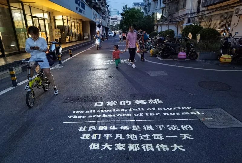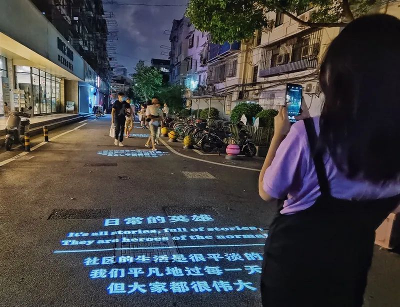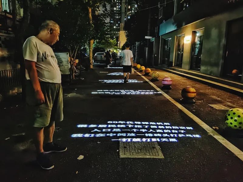 郑露荞还记得当初到现场调试灯光,当诗句第一次打在地面上,居民们都好奇地围过来。