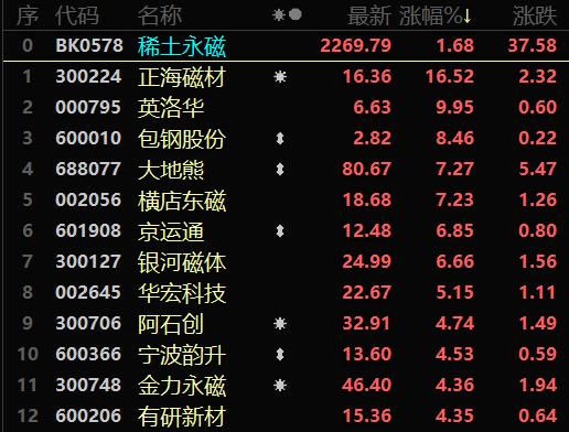 稀土永磁产业链集体受益,磁材股有望拉开α行情序幕
