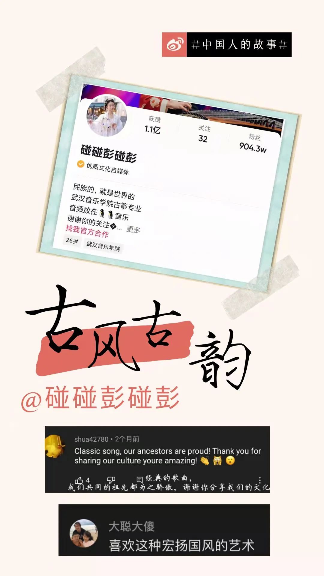 彭静旋在抖音的签名是这样写的:“民族的,就是世界的。”