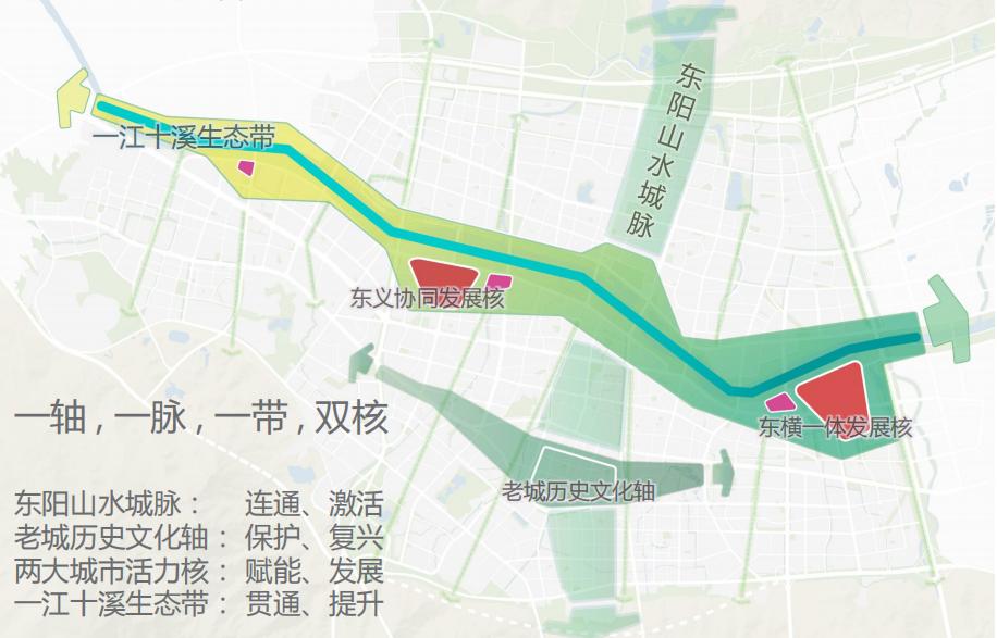 控发展保护分歧,用“二八原则”做符合东阳实际的适度设计。通城区任督二脉,提升城市一般空间的价值和特色。