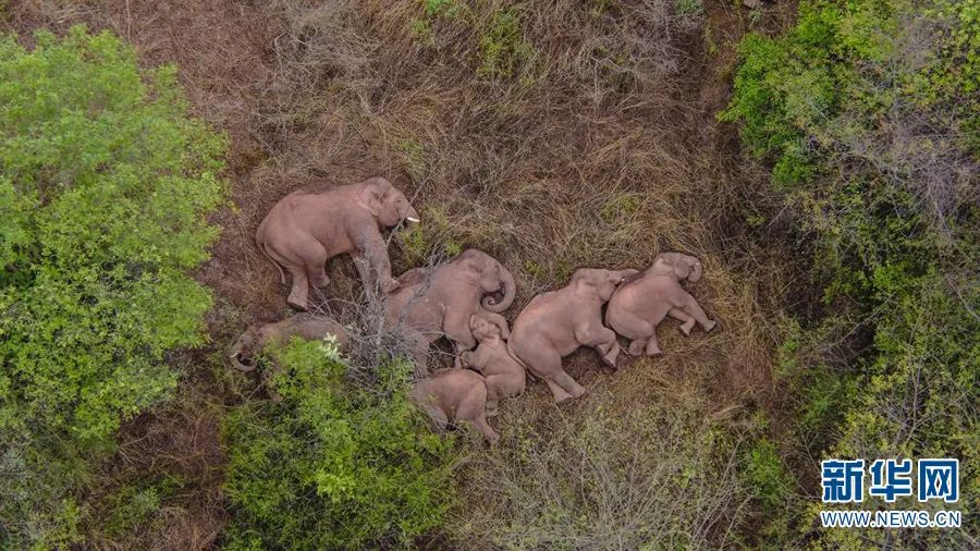 2021年6月7日在昆明市晋宁区夕阳彝族乡拍摄到的野象(无人机照片)。新华网发(云南省森林消防总队 供图)