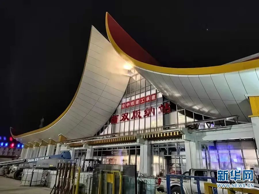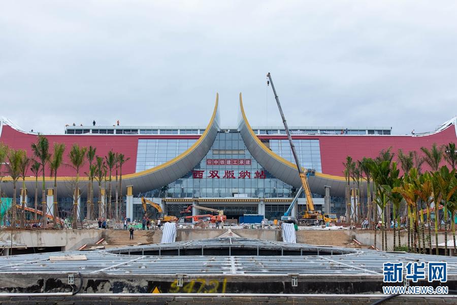 中老铁路西双版纳站,站房“颜值”初显,正在进行最后的装饰装修(10月25日摄)。新华网 赵普凡 摄