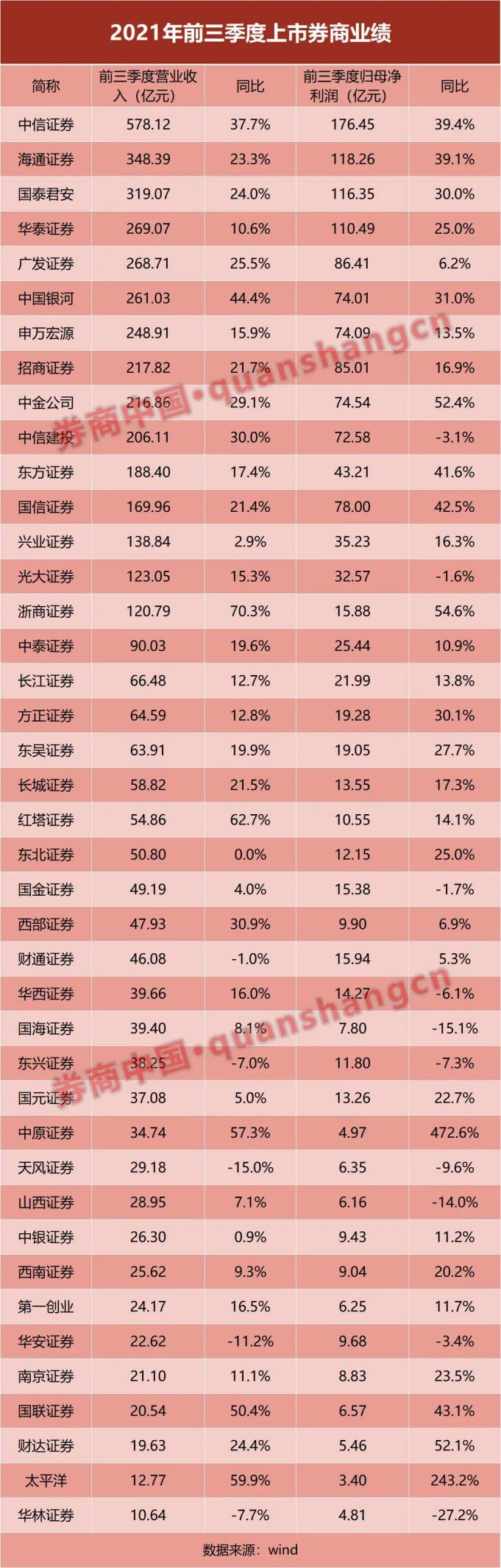 结合各上市券商今年三季报情况,尽管统计口径略有不同,但仍可窥得证券行业马太效应再次加大。