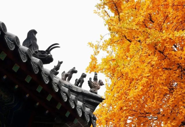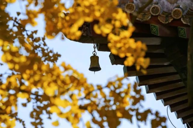 西风飒劲,一夜染黄季节的鬓角。即将凋离的叶,与红墙、云天,与游鱼、铃音,调出古刹最美的色彩,正是大片最美的拍摄地。焜黄华叶叶自零,露白霜月月宜人。