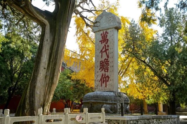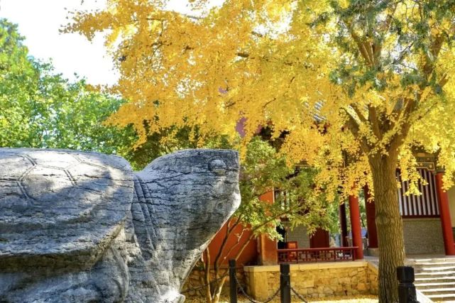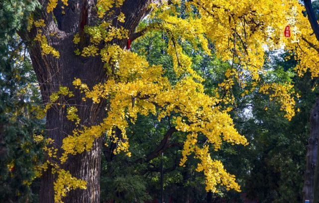 初冬时节,岱庙中的那一抹银杏黄在红墙苍柏的映衬下依旧耀眼。