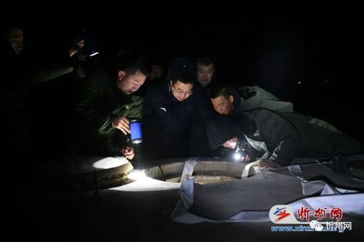 由于漏水点处于管线下方,且创口较长,管线修复作业的难度增大。22时,县委书记王建峰,县委副书记、县长赵亚静,县委副书记张一枝以及武强、刘富源、李志勇、李变平、张红兵、郭会军、梁建义等四套班子领导和山西滹沱河管理有限公司技术人员、忻州市水务有限责任公司专家深入现场实地查看,再次会商研判,敲定漏水点作业面清淤和管网修复的方案,决定以玻璃夹砂管缠绕法进行修复。
