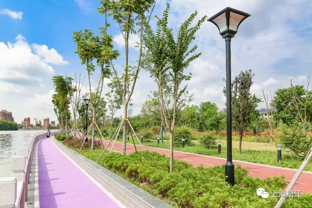2019年4月,泗泾塘河道整治(一期)工程开工,河边修了一条滨河步道,还建起了泗滨绿地公园,陈珍容的幸福感大大提升。“刚搬来时,小区周边2公里没有像样的休闲场所,现在滨河景观带成为好去处。我常常傍晚去散步,走上5分钟就来到彩色沥青步道上,夏天吹着江风,欣赏着河道景观灯,感觉住在这里生活品质大大提升了。”陈珍容说。
