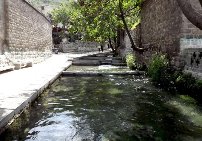 娘子关村依山而建,顺水而居,分布在长约2公里的沿河岸边,俨然一派江南水乡的景色。水给了村子灵气,形成了“人在水上走,水在屋下流”的人间美景。