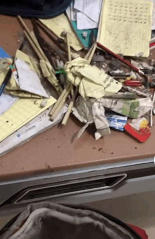 掏出来一把把废纸,翻出来一堆堆垃圾,