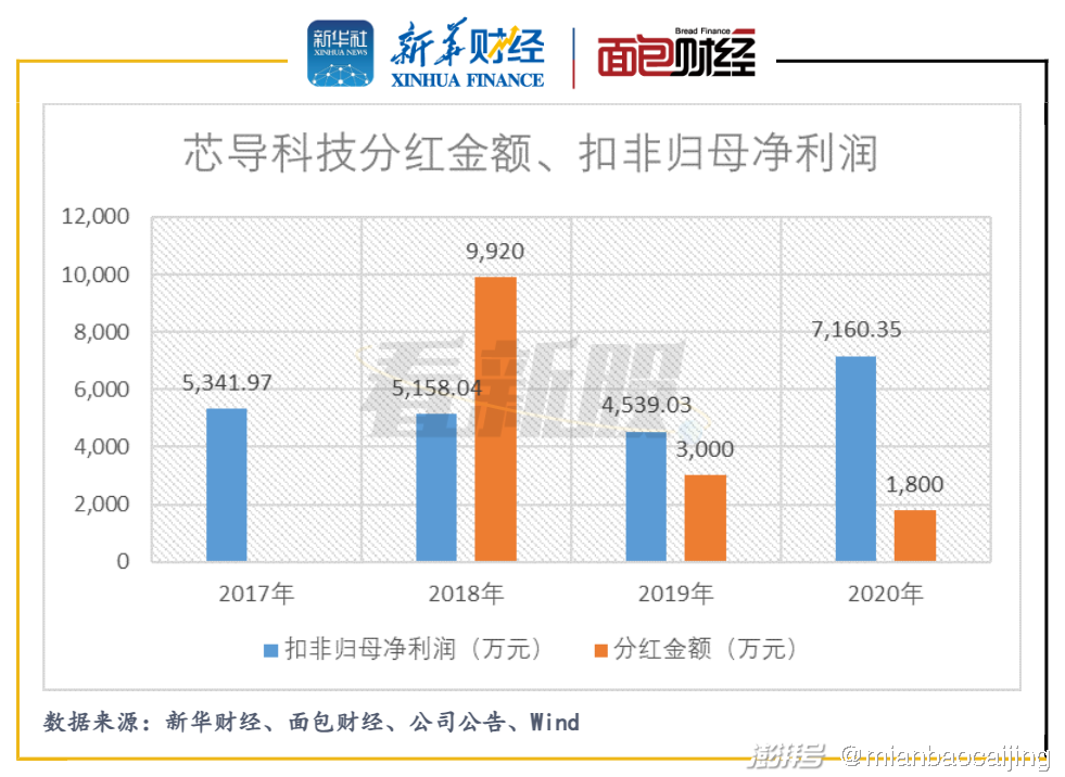 图2:2017年至2020年芯导科技分红金额、扣非归母净利润