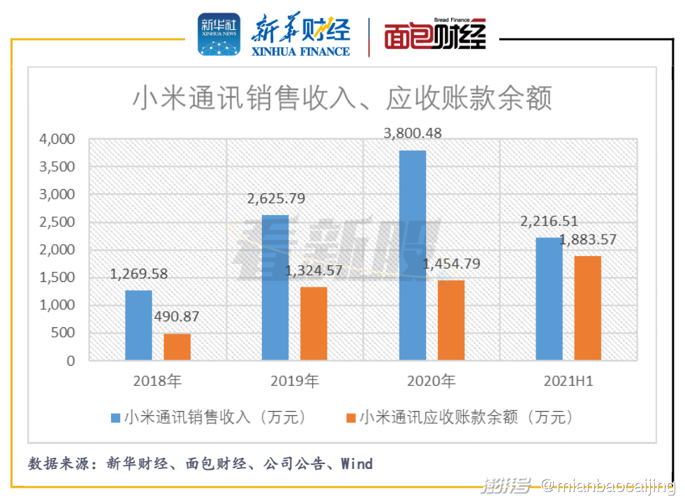 图5:2018年至2021H1小米通讯销售收入、应收账款余额
