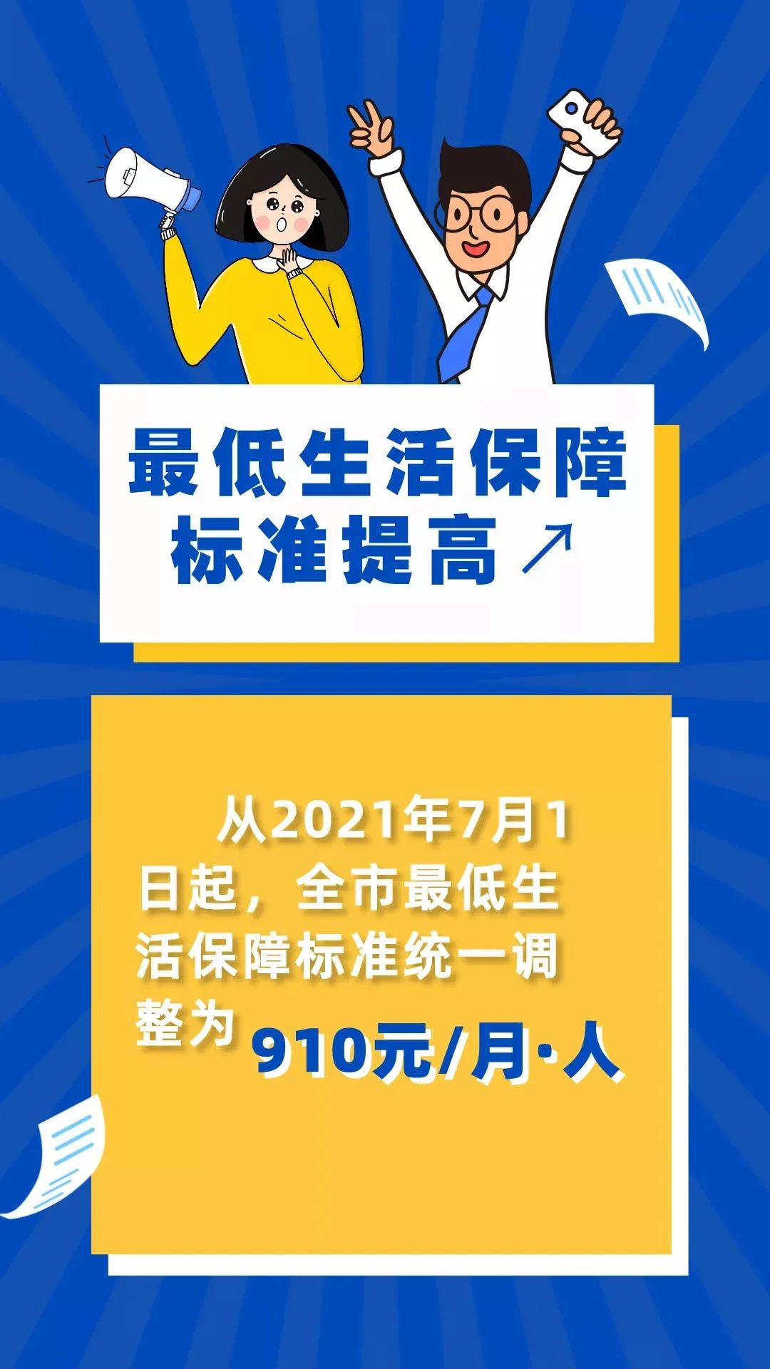 根据丽政发〔2021〕26号文件,从2021年7月1日起,我市最低生活保障标准再次提高,从现行的每人每月850元提高到每人每月910元,增幅7.06%。