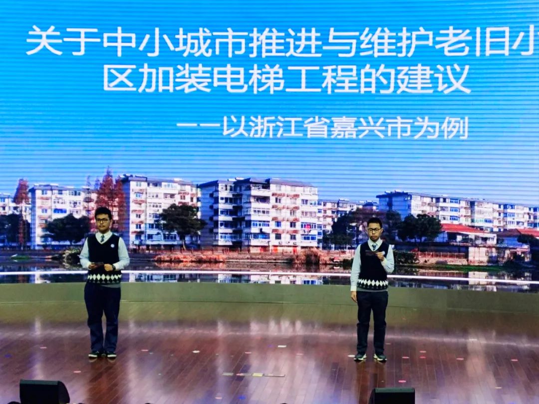▶在此次成果发布现场展示的《关于中小城市推进与维护老旧小区加装电梯工程的建议》课题报告,是茅齐天、柯晓睿和朱泉宇三位学子在实地考察、研究了浙江嘉兴部分没有安装电梯的老旧小区住宅楼宇后写成的建设性方案,对解决中小城市“悬空老人”下楼难问题有一定的的借鉴价值。