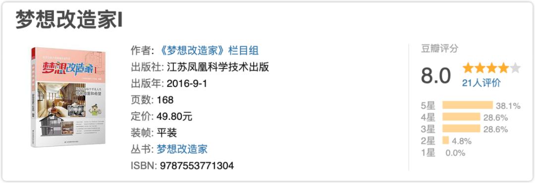 2016年秋天,《梦想改造家》栏目组曾策划出版了一套图书,收录了节目中的内容,为大众提供灵感。面对难题的挑战欲和贴近生活的参与感曾经是节目热度的关键所在。