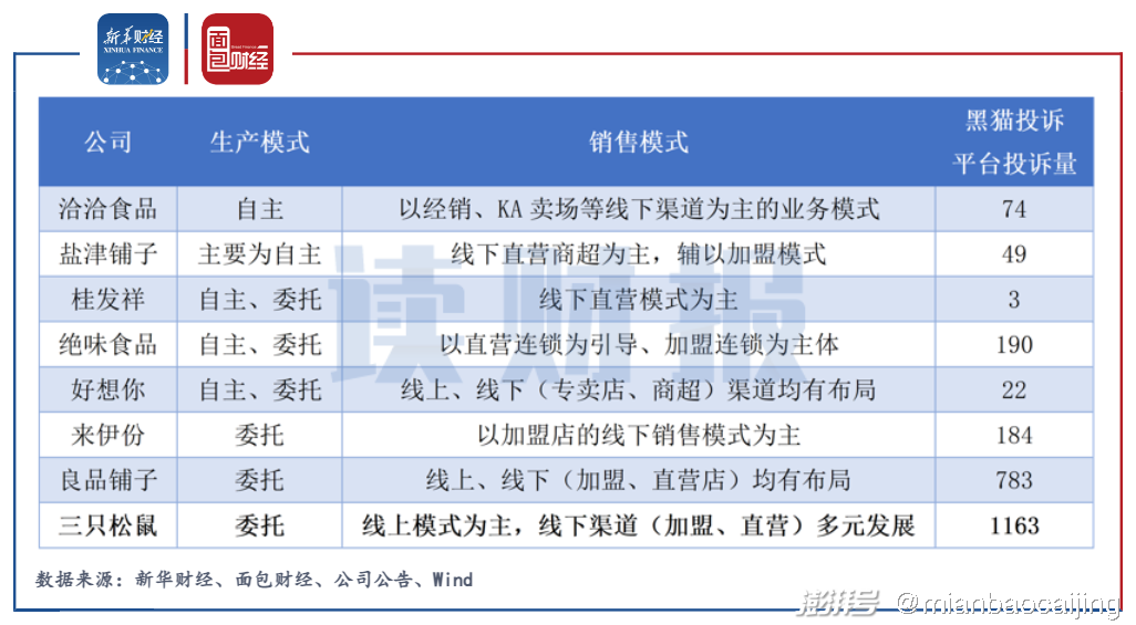 图1:三只松鼠及可比公司运营模式及投诉情况