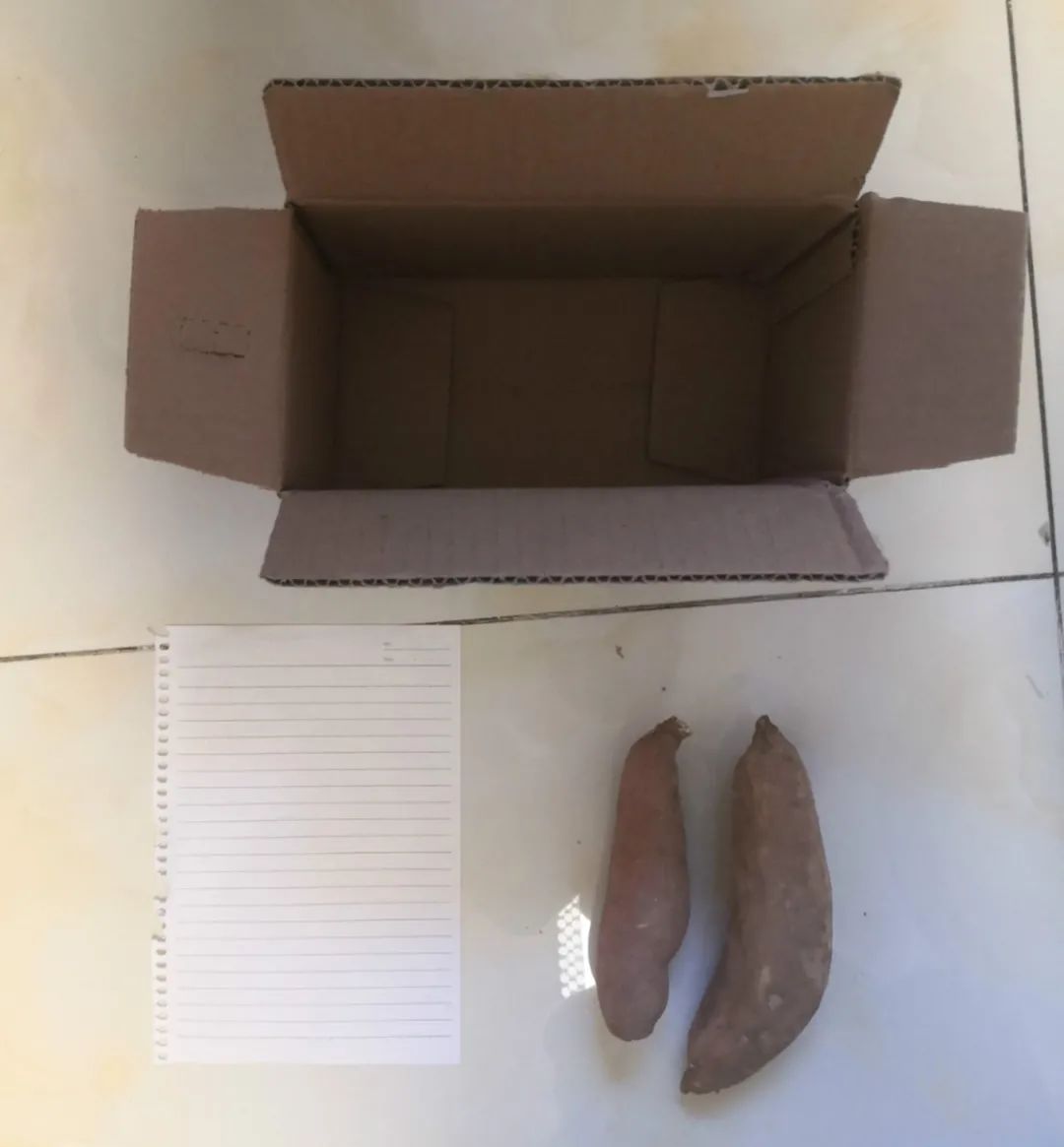 准备一个纸箱(快递箱即可)、几张洁净的纸(报纸、白纸均可)、待储存的红薯。