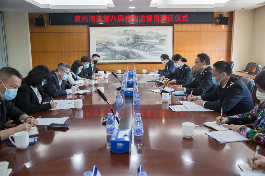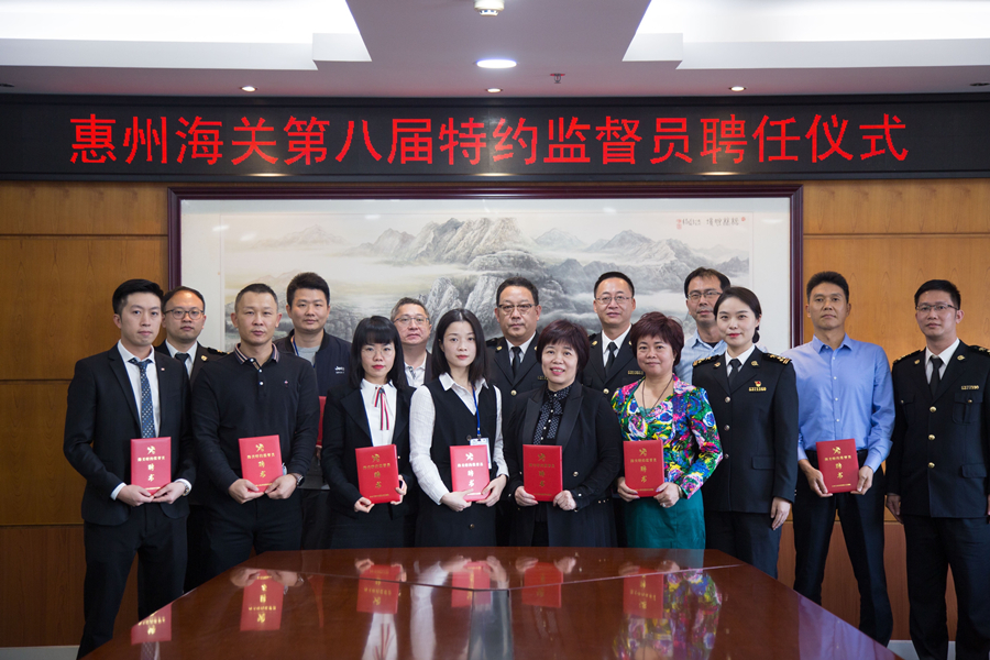 11月26日,惠州海关举办惠州海关第八届特约监督员聘任仪式。此次会议聘任来自政府部门、媒体及企业各界代表共10名特约监督员,任期3年。自2004年开始,惠州海关已连续七届聘请社会各界代表担任特约监督员,特约监督员对惠州海关的党风廉政建设和业务队伍建设都起到了积极的推动作用。