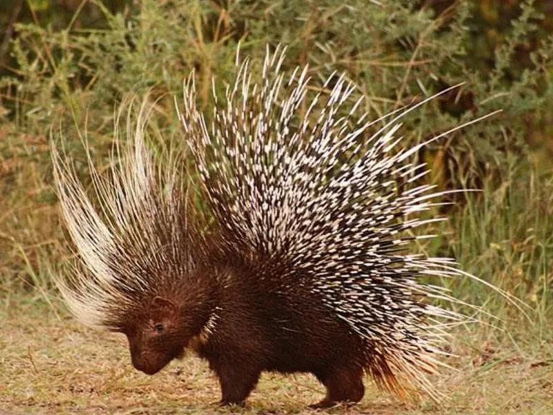 豪猪的刺上面布有细小的倒钩,如果挂在身上需要花费一番功夫才能除去,很多不知凶险的动物都曾领略过豪猪的威力。