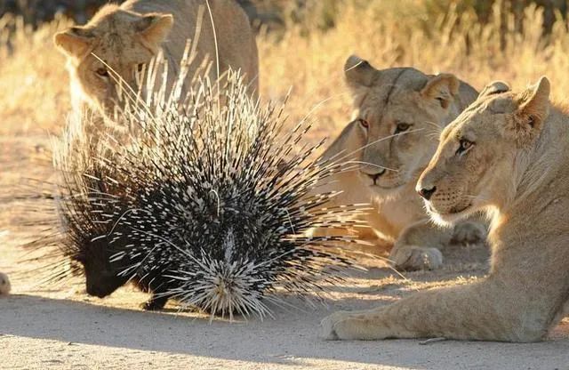 连狮群遇到豪猪也是没有办法,不敢靠近。