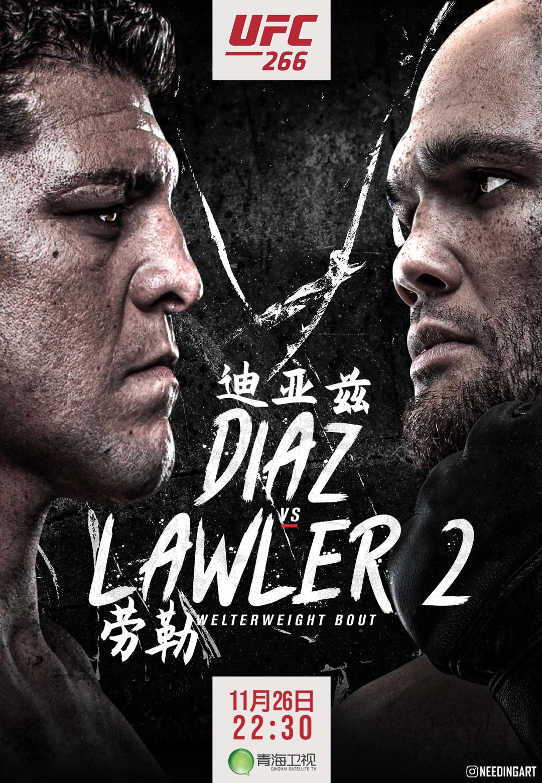 2021年11月26日 22:30,本期青海卫视《龙斗之UFC》将为大家带来UFC266期头条主赛,由沉寂多年复出归来的尼克-迪亚兹二番对阵前 UFC次中量级冠军罗比-劳勒。