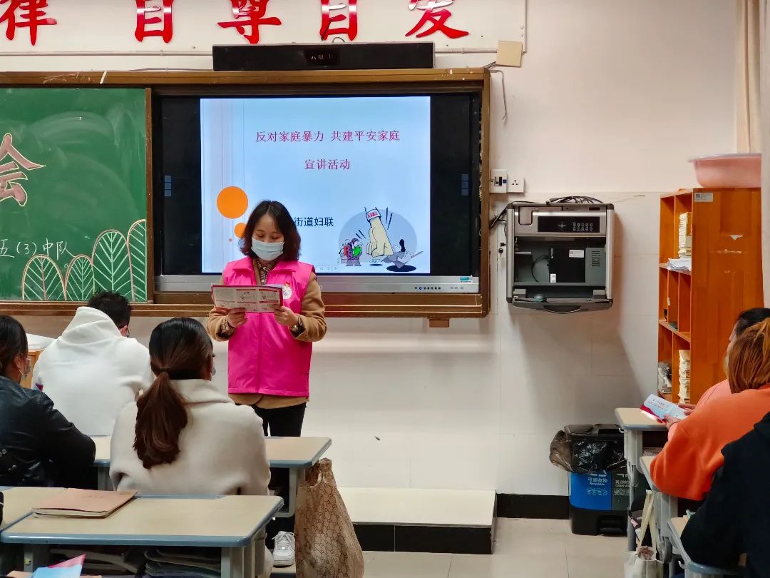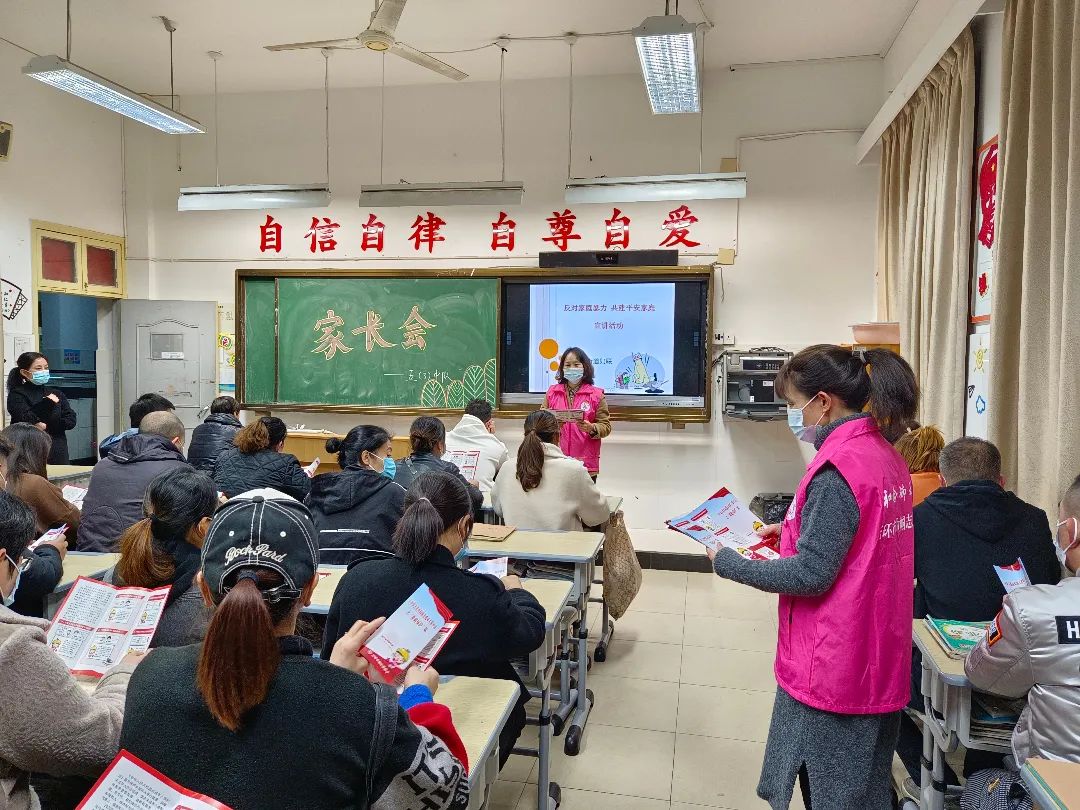 11月24日晚上,坎门街道妇联联合坎门中心小学,利用家长会之际开展“反对家庭暴力 共建平安家庭”宣传,分发《反家庭暴力法》《未成年人保护法》等资料。