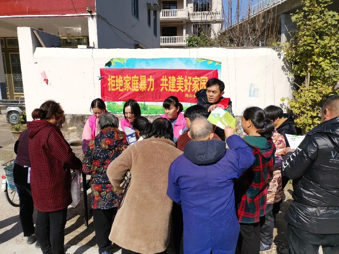 11月25日,海山乡妇联发动巾帼志愿者开展《反家庭暴力法》知识宣传,深化平安家庭建设,构建和谐美好社会。