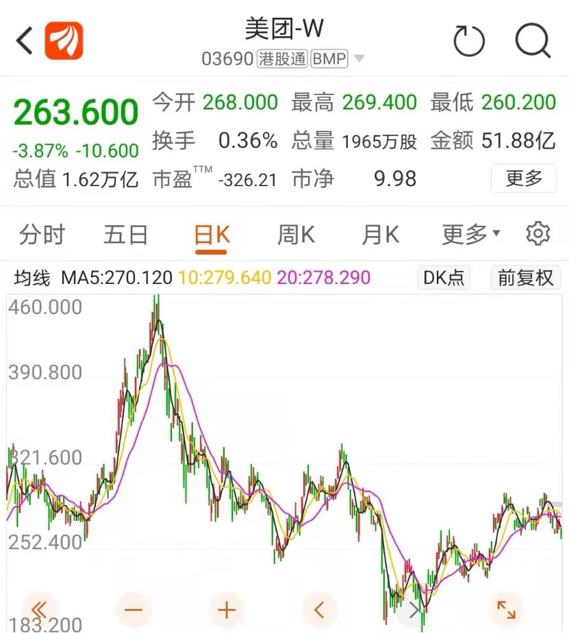 二级市场上,美团港股股价近期维持震荡格局,最新市值为1.62万亿港元,最新股价为263.6港元,较8月份低点上涨43.88%,但较2月高点仍回调近43%。