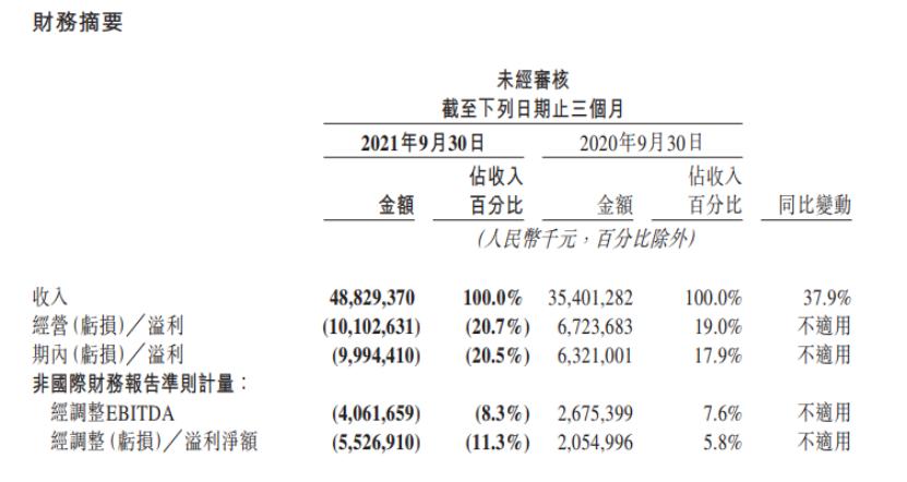 11月26日晚间,美团发布了业绩报告。第三季度,美团的营业收入达到488.3亿元,同比增长37.9%;净亏损99.94亿元,上年同期盈利63.21亿元;经调整亏损55.27亿元,上年同期盈利20.55亿元。