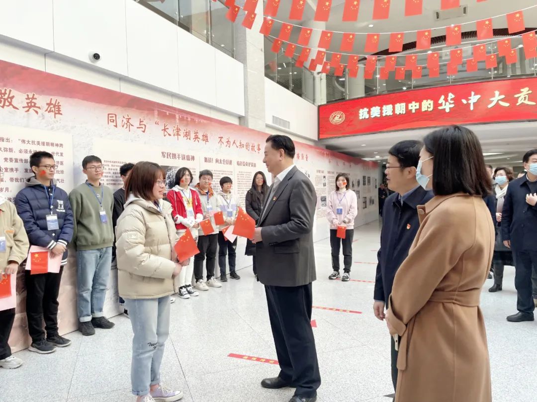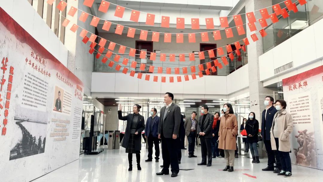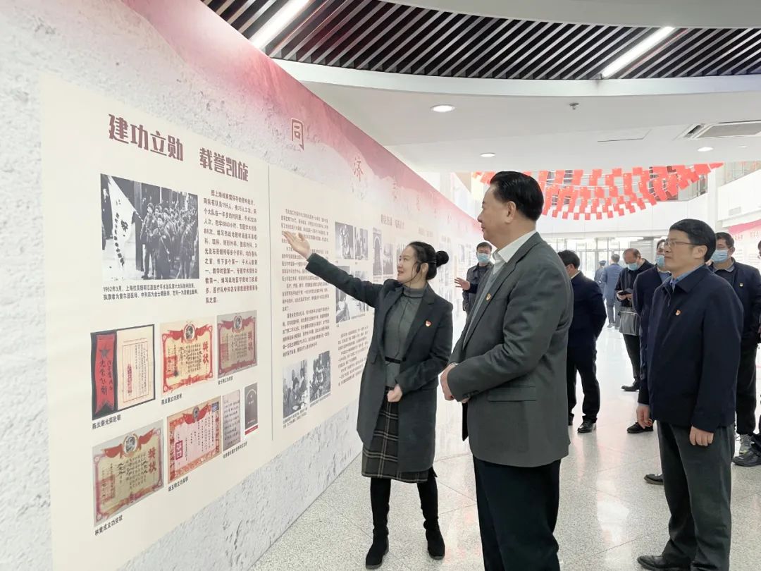 李元元一行一边聆听解说,一边驻足细看。当听到同济志愿手术大队、武汉协和中队医护人员的生动故事时,李元元停下脚步,仔细看着图片上队员们的面容,浏览文字记录,并询问具体细节。在观看同济师生与“长津湖英雄”不为人知的故事版块时,李元元为长津湖战役幕后英雄们的无私奉献所感动,充分肯定他们为抗美援朝医护事业作出的积极贡献。