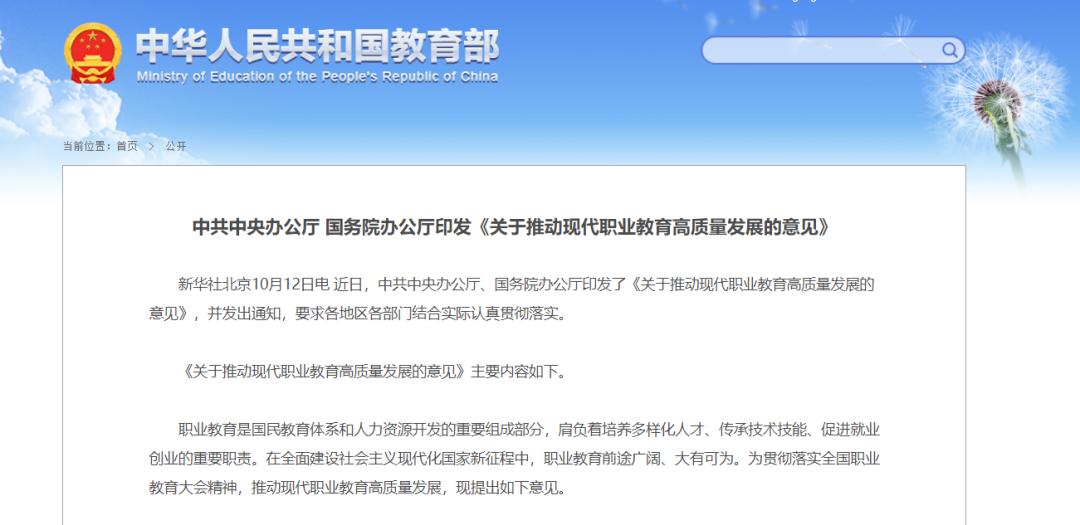 摘自《关于推动现代职业教育高质量发展的意见》