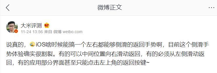 iOS 的左侧侧滑返回手势有多 “ 谜 ”,想必用过安卓左右两边返回手势的差友应该都深有体会,这点在我之前也早就有很多博主发微博或者视频吐槽过:
