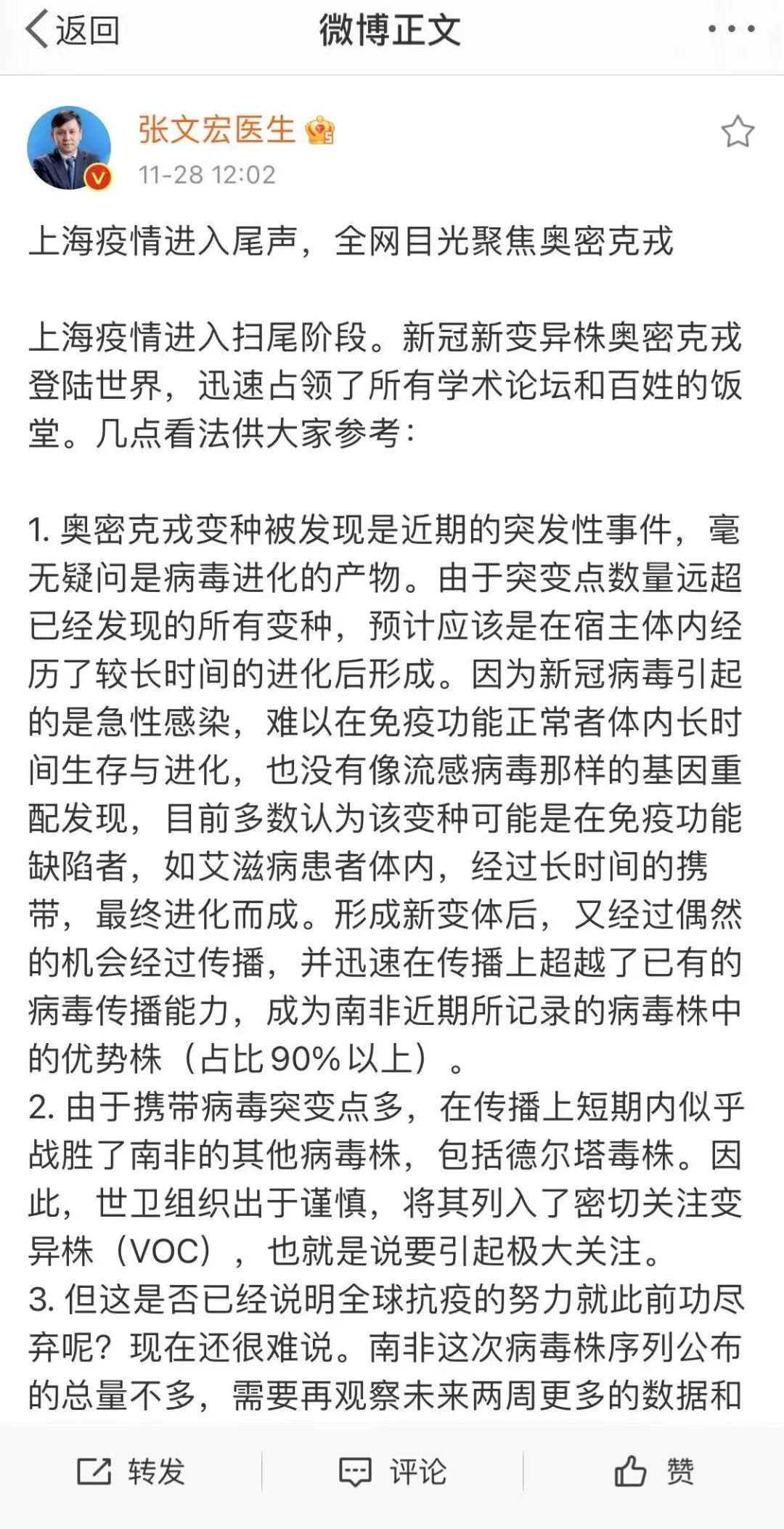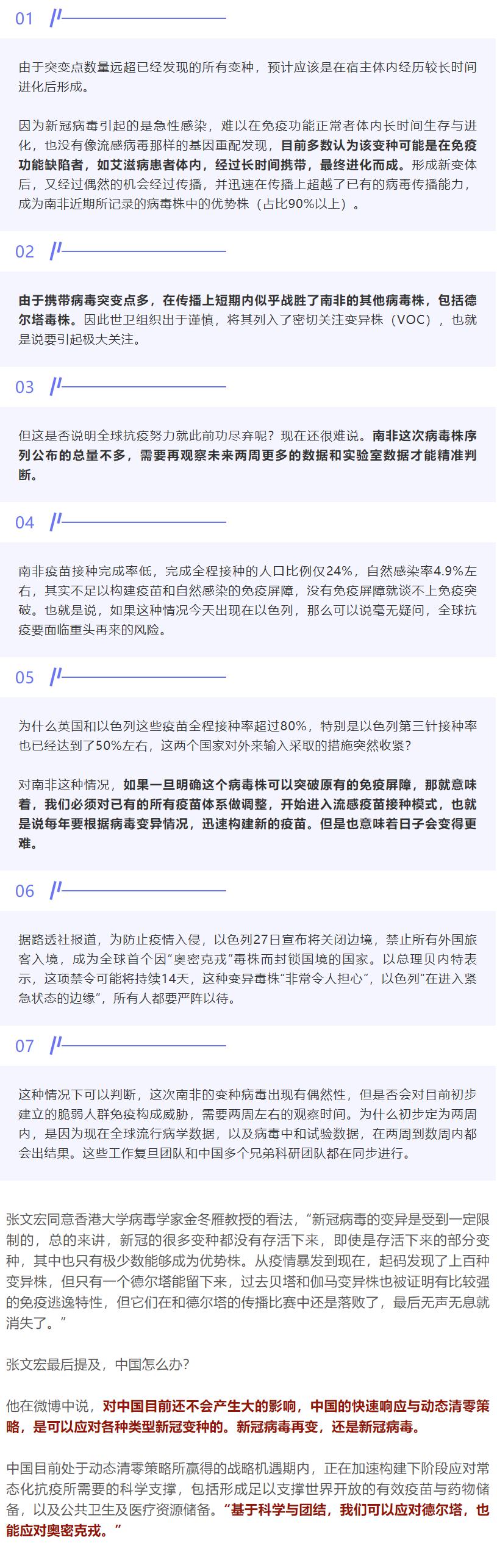 奥密克戎变种被发现是近期的突发性事件,毫无疑问是病毒进化的产物。张文宏就新毒株讲解7点。