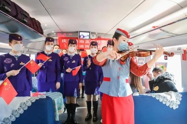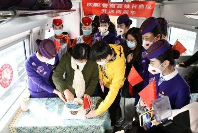 2021年11月26日是日兰高铁日曲段开通运营两周年的日子,担当乘务工作的青岛客运段管内动车队在环线列车上举行了纪念活动。