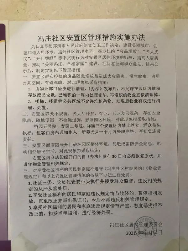 “30号之前不把狗狗送走,就会有人上门处理。”近日,河南省郑州市冯庄社区一名住户向媒体反映,9月份开始,小区电梯口便张贴了全面禁止养狗的公告。对此,冯庄社区居委会负责此事的工作人员回复称,居委会的入户调查是针对业主进行的,“现在的工作主要是和房东沟通,不会强行开门搜狗。但禁养通知暂时没有改变。”