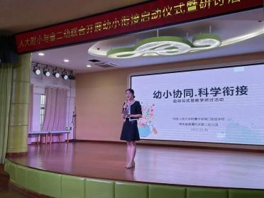 为贯彻落实教育部《关于大力推进幼儿园与小学科学衔接的指导意见》和省教育厅印发的《海南省推进幼儿园与小学科学衔接攻坚行动实施方案》文件精神,明确幼小科学衔接任务和内容,11月26日,海南省直属机关第二幼儿园与中国人民大学附属中学海口实验学校作为牵手实验校(园),联合开展了幼小衔接工作启动仪式暨研讨活动。省妇联党组成员、副主席陈桦,中国人民大学附属中学海口实验学校校长蒲煜,海南省直属机关第二幼儿园园长李琴,以及老师代表、大班幼儿和家长代表等60余人出席活动。