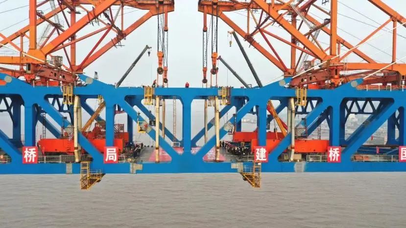自2020年10月15日中跨首节段钢梁开始吊装,2021年4月17日钢梁合龙,仅用184天即完成了全部钢梁吊装任务。