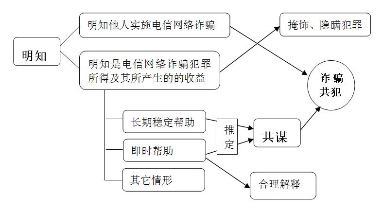 依据共犯理论和现行法律规定,成立电信网络诈骗罪的共犯除了参与犯罪过程或提供帮助,行为对犯罪结果具有原因力外,还需行为人主观上对非法占有不特定对象的财产具有故意,具体通过对参与或帮助实施电信网络诈骗主观明知程度进行审查和判断。