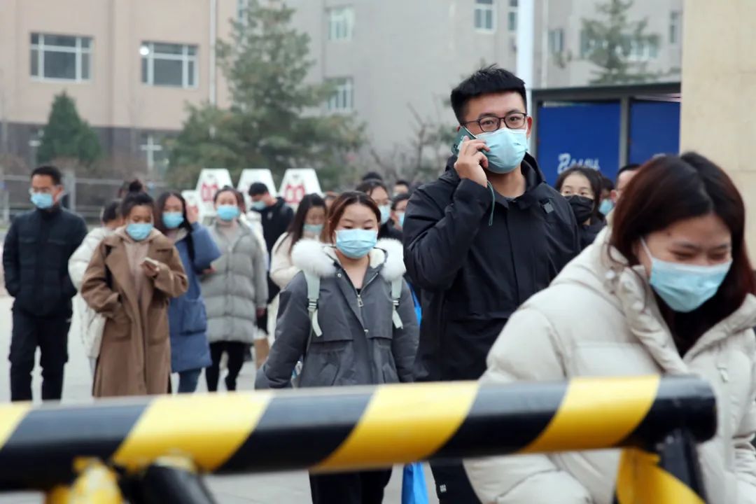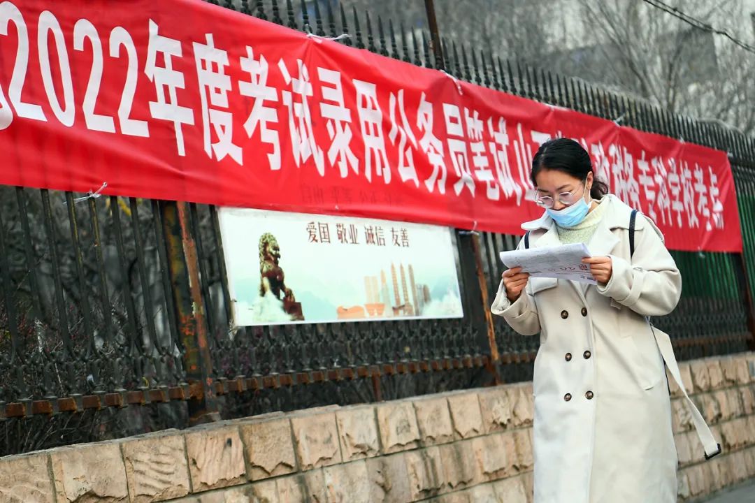11月28日,中央机关及其直属机构2022年度公务员招录公共科目笔试举行。在太原考点,考生井然有序步入考场。