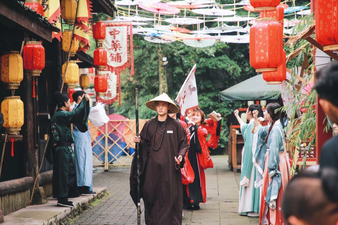 街子古镇是毛凌舟团队落地的第一个剧本杀景区项目,当玩家走进景区,就像走进一个虚拟世界,游览与做游戏任务叠加,带来更加沉浸的体验。毛凌舟认为,轻沉浸的剧本杀很难做出差异化,消费者只会就近选择门店,但中度沉浸、重度沉浸的玩法就不一样了。