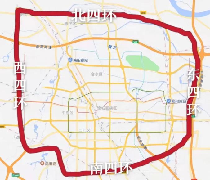 重污染天气预警期间,国四柴油货车禁止驶入北四环路(大河路,不含本路)以南、东四环路(含本路)以西、南四环路(含本路)以北、西四环路(含本路)以东区域内(区域内 连霍高速不限行)。