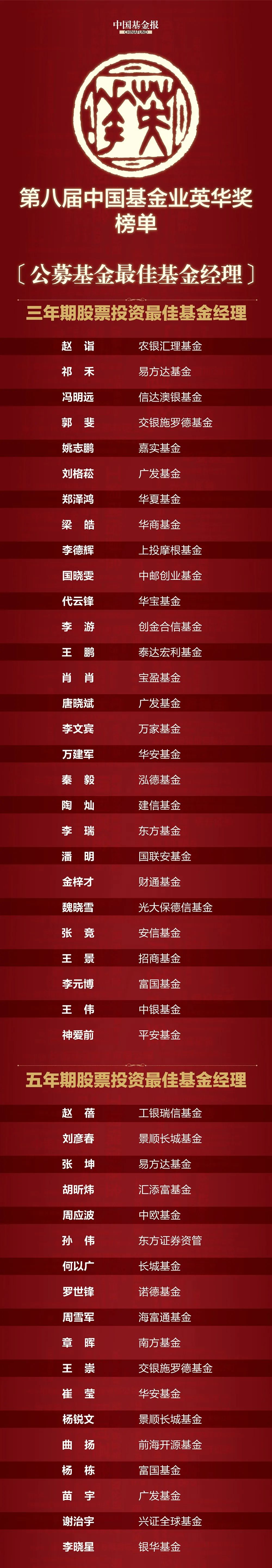 原标题:《重磅发布!买基金就是选基金经理!最牛基金经理在此:第八届中国基金业英华奖榜单!》