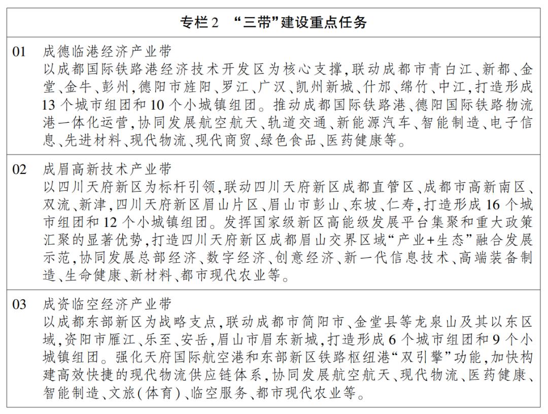 打造“三带”,即打造成德临港经济产业带、成眉高新技术产业带、成资临空经济产业带。