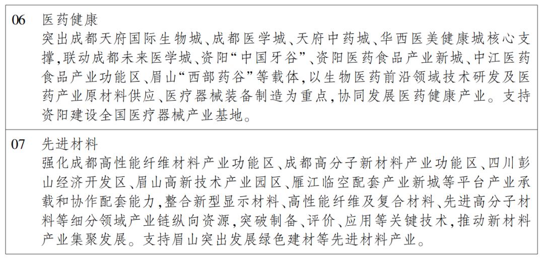 按照《规划》,成都都市圈将坚持“强链条、育集群、建体系”,构建高端切入、错位发展、集群成链的现代产业体系,共建现代高端产业集聚区。