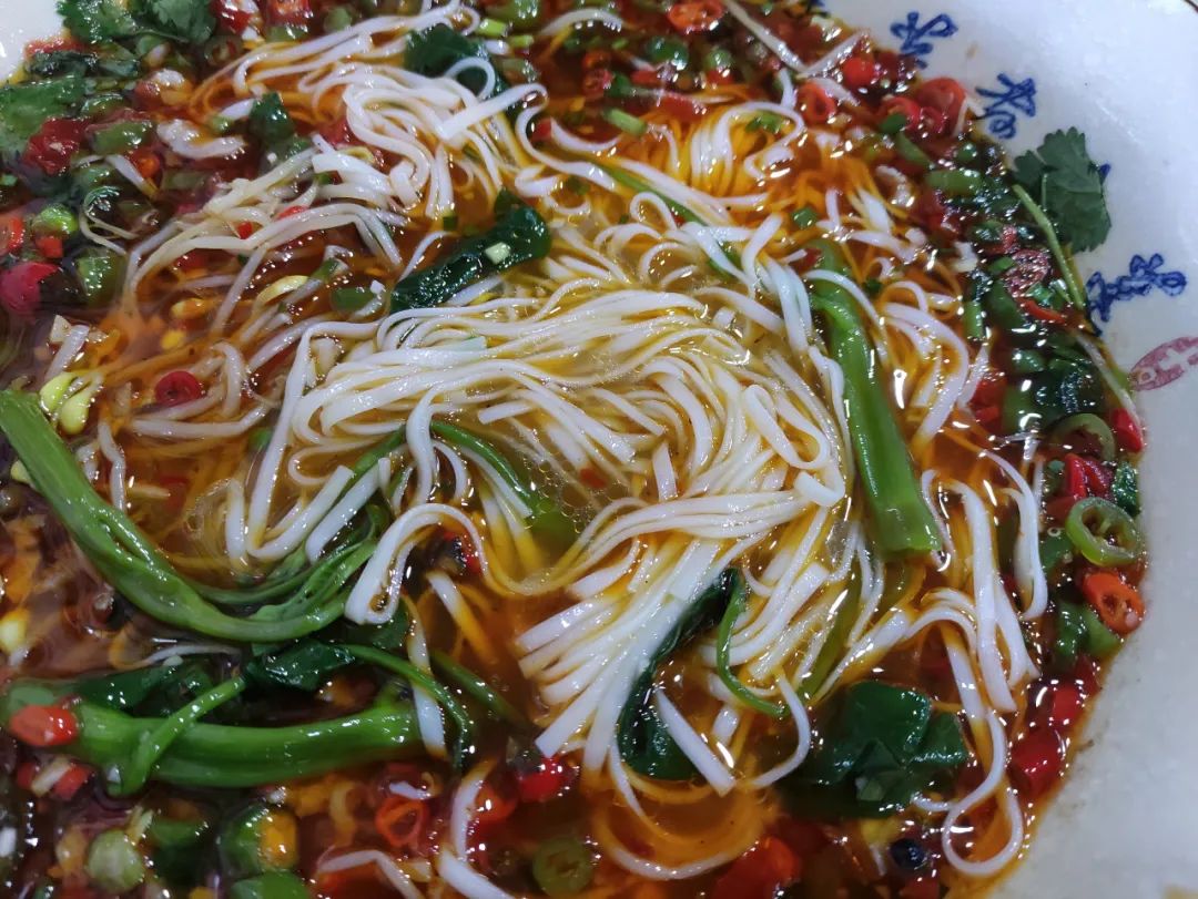 吃到接近尾声时,就像用剁椒鱼头下面一样,再点一份细面泡进汤里,将这鲜辣的滋味进行到底。