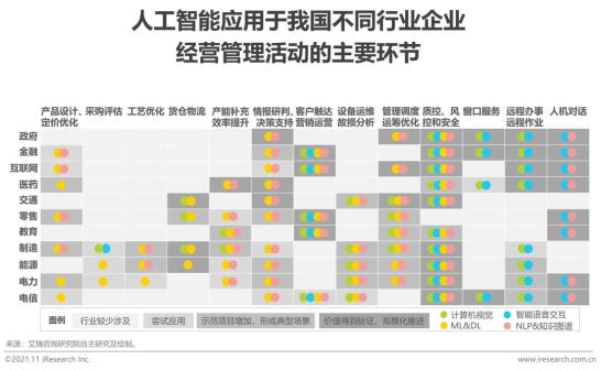 具体到实际应用中看,人工智能已广泛渗入各行业经营管理的诸多环节,为企业带来更高效的自动化流程、更精准的情报分析以及更智能的运营管理。当前国内人工智能应用成熟度较高的领域包括:①在金融、互联网等需要密集与客户沟通交流的行业中用于智能呼叫、客服、销售等环节,帮助企业提升触达能力和服务质量,从而提升用户粘性;②赋能公安、交通和企业内部的安防监控以及制造业企业的物流配送、产品质检等环节,代替人眼进行大规模监测并提升监测精准度、从而提高调度和管理效率。整体来看,感知智能的诸多应用对于企业的应用价值已得到了市场验证,而涉及认知分析、智能决策的认知领域的应用成熟度也正在逐步提高,已在部分行业展开试水,应用渗透有望加速。