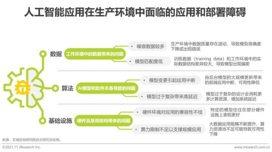 企业在实际应用人工智能的过程中主要面临基础设施、AI算法及数据等方面的阻碍。在基础设施方面,企业的IT基础设施在海量数据参与运算和采取分布式架构的条件下可能面临算力不足以及不兼容问题,从而降低企业AI应用的可用性;在算法领域,以“大模型”为代表的人工智能算法模型体现出模型参数的数量不断增加的趋势,高度复杂化的模型融入应用程序后可能带来应用延迟的增加,而在交付和部署后对模型的修改也会给用户带来服务中断等问题;此外,由于训练/测试环境和生产环境存在差异,实际应用中的数据存在较多噪音、与模型匹配度较低,也会降低AI应用的质量。总体来看,尤其是中小企业在应用和部署AI应用过程中所遇到的障碍更需要高质量的软硬件平台提供支持,降低开发者在基础配置和运维方面的消耗的精力,并帮助开发者提升模型优化能力。