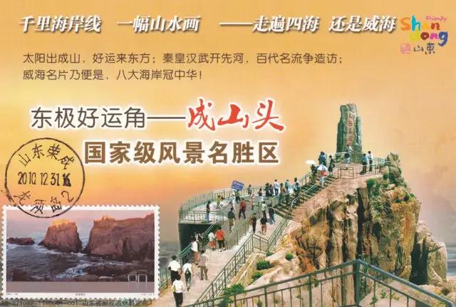 这张明信片上的成山头,日出东方,耀眼又明亮。